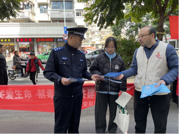 东南网1月14日讯(通讯员 游丹虹)为进一步加大禁毒宣传力度,提高群众识毒、防毒、拒毒的思想意识,营造全民禁毒的环境氛围。1月14日下午,鼓西派出所民辅警联合陆庄社区干部在人流量较大的西洪路沿街马路摆摊设点开展“远离毒品,关爱生命,共建无毒家园”的禁毒普法活动。 正直学生放寒假之初,沿街不时有学生路过,民警向学生以通俗易懂的语言讲解禁毒知识、毒品的种类特征,特别是现在新型毒品容易吸引辨别能力较薄弱的年轻人,提醒学生要远离不良的朋友圈、生活圈,鼓励勇于检举和揭发身边的违法吸食毒品、贩毒等行为。本次发放宣传单百来份,得到现场群众较高的反响。