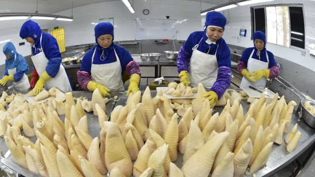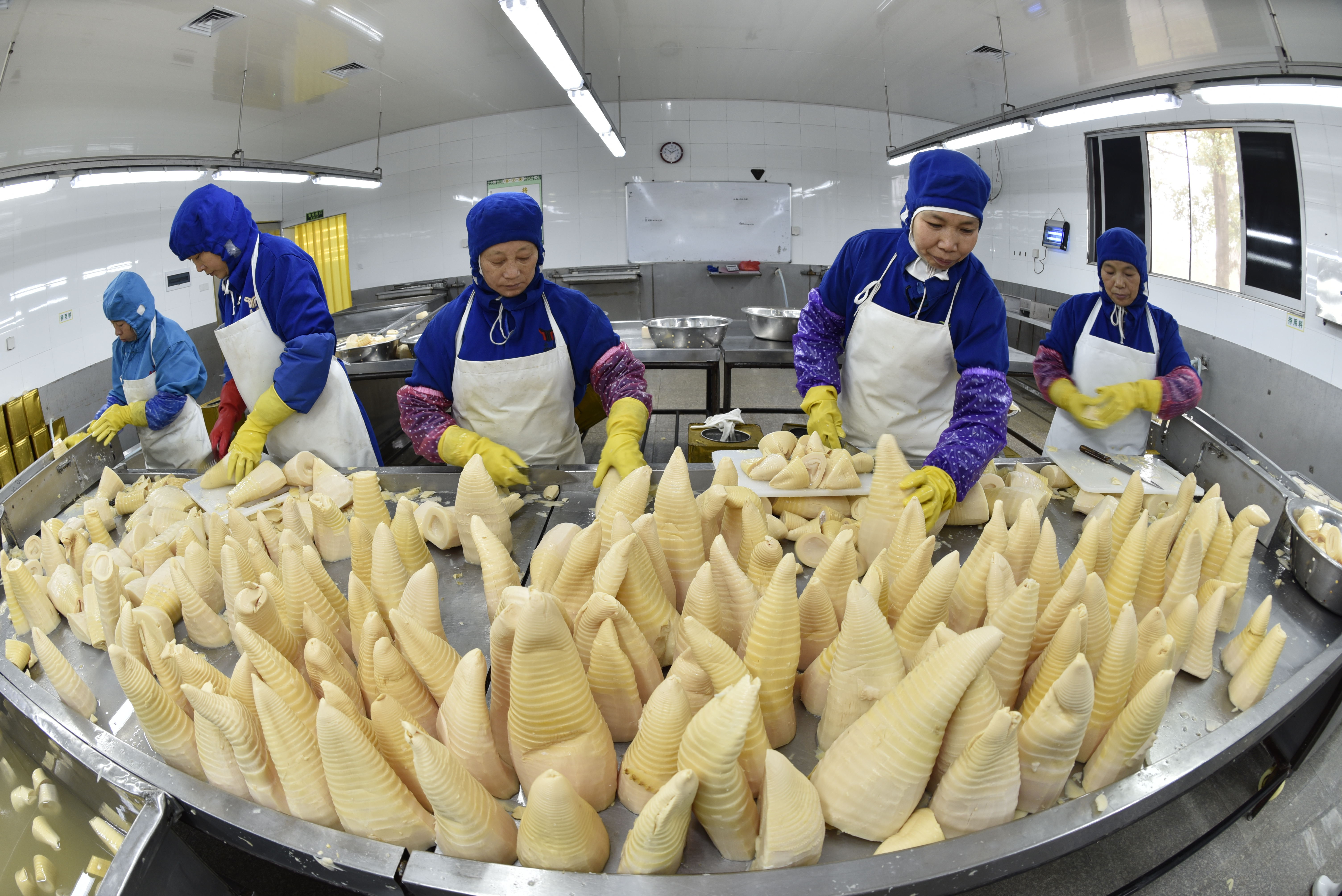 福建省易扬食品有限公司员工的加工生产水煮笋。