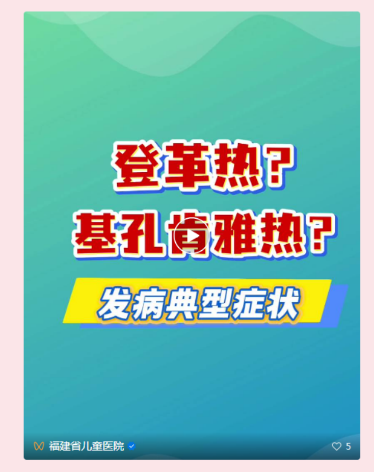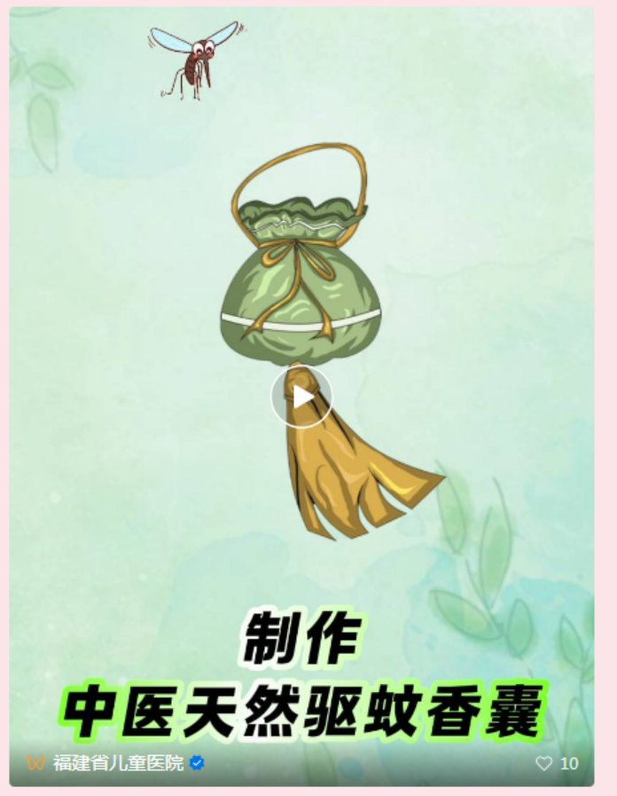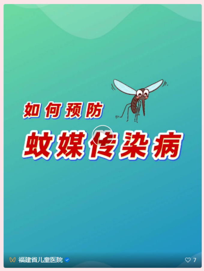 前言 省计生协会携手上海儿童医学中心福建医院(福建省儿童医院)联合推出“儿童健康大讲堂”专栏,聚焦儿童成长健康管理、疾病预防及科学养育等问题,通过医疗专家解读实用知识科普,为广大家长提供专业、贴心的育儿指导,助力儿童健康成长。 热҈热҈热҈的夏天 蚊子们也开始"疯狂营业"啦 你以为它们只是 在你耳边嗡嗡嗡 顺便送你几个“大红包”这么简单? 事实上它们还能传播 基孔肯雅热、登革热等 危险传染病 基孔肯雅热、登革热有什么典型症状 我们又该如何科学预防 让自己和家人远离蚊媒威胁? 本期专栏邀请 上海儿童医学中心 福建医院(福建省儿童医院) 感染科&中医科团队为你解惑 登革热、基孔肯雅热 发病典型症状 如何预防蚊媒传染病? 制作中医天然驱蚊香囊 医院简介 上海儿童医学中心福建医院(福建省儿童医院)是党的十九大以来我省卫生计生领域第一个开工建设的民生补短板重大项目。2020年12月25日,医院正式开诊运营,2021年6月,获批立项第二批国家“区域医疗中心试点项目”,2023年获批成为福建省儿科专业质量控制中心。2024年,儿科、儿外科2个专业基地获批“国家住院医师规范化培训基地”。医院占地面积233亩,建筑面积22.7万平方米,编制床位1000张,现有职工930人,硕博导58人,柔性引进客座专家、特聘专家41名,柔性引进人才团队2个,5个省级专科分会挂靠医院开展工作,获批省级临床医学中心1个,省级临床重点专科建设项目12个,省级临床医学研究中心1个。开诊以来,医院累计门急诊量226.3万余人次、出院10.69万余人次、完成手术近4.24万例,年均增长率分别为42.30%、40.60%、37.50%,其中三四级手术占比63.66%,开院至今累计开展新技术新项目219项,其中开展全国首例8例,省内首例18例,医院疑难危重症病种覆盖率达93.64%,核心技术覆盖率达85.71%;医院SCI发表数量年均增长57.93%,科研项目立项数年均增长48.68%,其中国家级项目2项,省卫健委重大专项5项。 科室简介 感染科 福建省儿童医院感染科为重点学科,由上海儿童医学中心感染科主任曹清教授担任学术主任,擅长各种儿童常见感染疾病的诊治并具备丰富诊治经验,重点攻关发热待查和疑难复杂感染性疾病(脓毒症,难治性肺炎,疑难中枢感染(EBV脑炎),CE-EBV等),HLH(MAS);淋巴结肿大待查;免疫缺陷;自身炎症性疾病,多重耐药菌感染等。目前主要承担院内抗生素会诊及疑难感染会诊。
