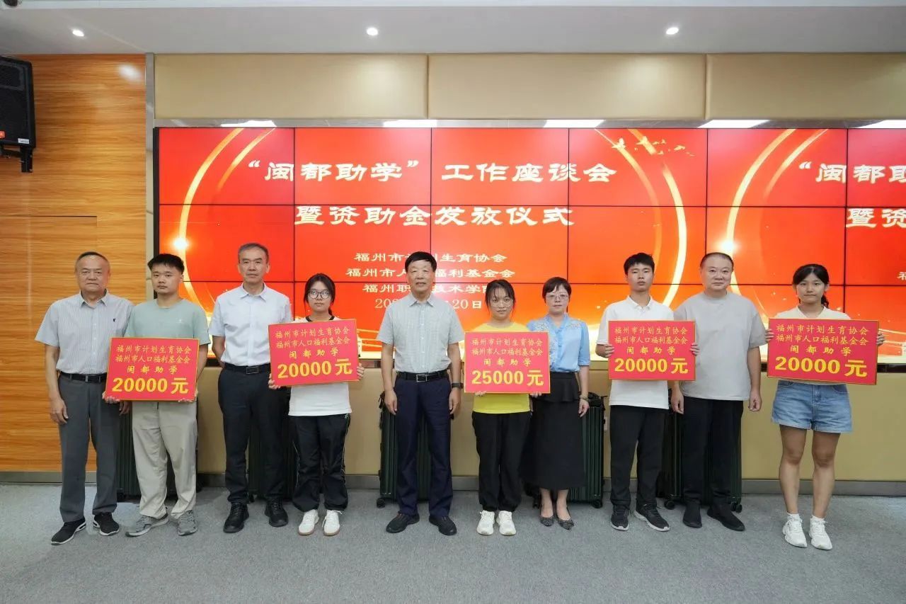 8月20日,福州市计生协、市人口福利基金会联合福州职业技术学院举办2025年“闽都助学”工作座谈会暨资助金发放仪式。福建省计生协副会长、福州市计生协会长陈大强出席会议并讲话。 2025年“闽都助学”项目在“一年五千,一助四年”,五年制本科学生资助延续一年政策的基础上,首次将计生特殊家庭第三代学子纳入帮扶范围,进一步扩大助学覆盖面。
