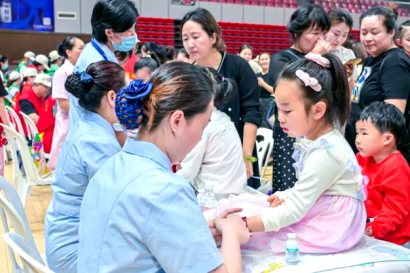南平市建阳区举办的“托育服务宣传月”启动仪式上的婴幼儿义诊活动现场
