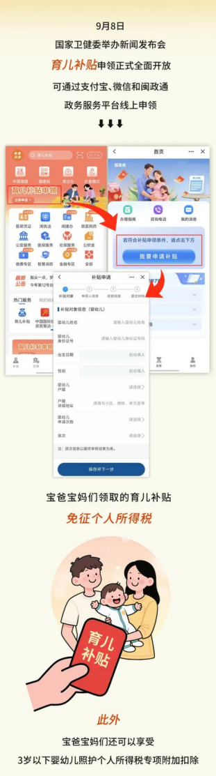 @宝爸宝妈 除了育儿补贴,还有一笔钱别忘了领!立即申请→