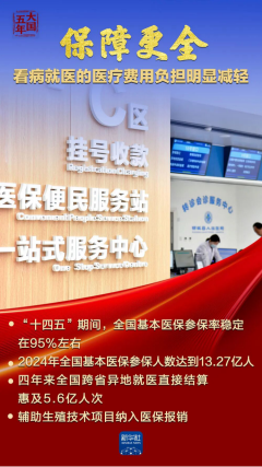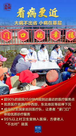 大病有托底、“老小”有所依。这五年,“网上问诊”“跨省报销”“检查互认”等举措,持续改写“看病难”“看病贵”。让我们跟随海报,感受更加公平可及、系统连续、优质高效的“健康中国”,如何提升人民群众的获得感、幸福感和安全感。