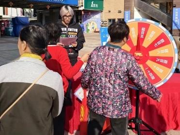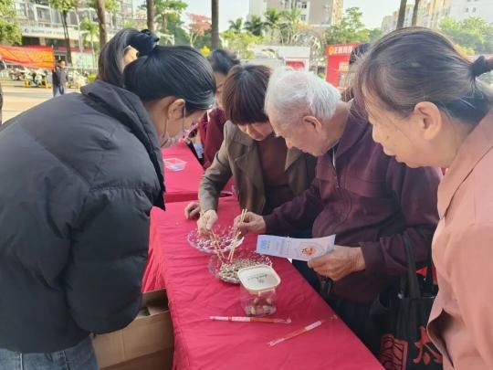 02 互动体验区热闹非凡,四大趣味活动将文明知识融入游戏中,让市民群众在参与中加深理解,内化于心、外化于行。 知识大转盘题目涵盖文明城市常态化创建的应知应会内容,让群众在娱乐问答中进一步学习了文明知识。“光盘行动”夹花生挑战,通过夹花生游戏认识了节约粮食、珍惜资源的重要性。文明习俗填空闯关让群众们在动手动脑间重温传统美德与现代文明规范。陋习“揪出”挑战引导市民群众识别并抵制身边的不文明现象,活动现场气氛热烈。