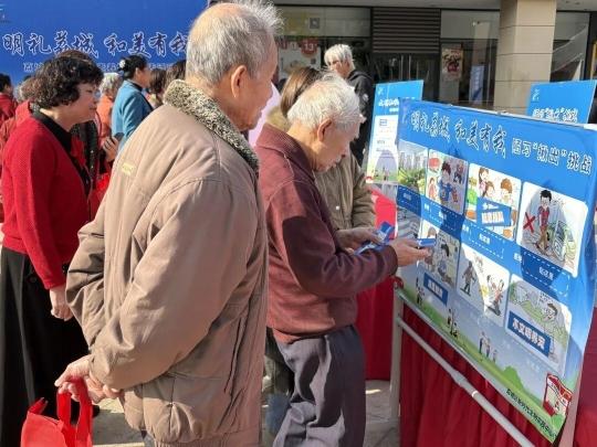 01 在宣传展示区,工作人员通过分发公共文明素养提升宣传手册、知识讲解、互动问答等方式,向市民群众普及文明知识,引导大家从身边点滴做起,践行文明礼仪。计生协会干部开展“新型婚育文化”宣传,引导市民群众树立健康、文明的婚育观念,倡导良好家风。