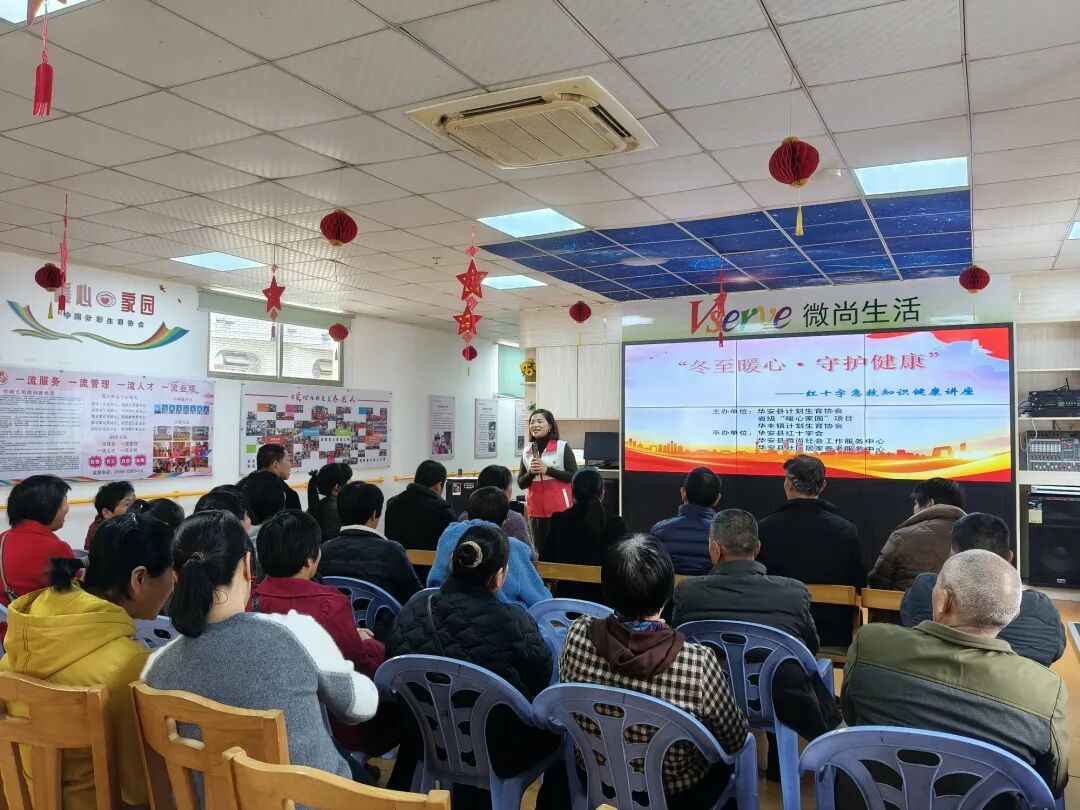 为提升计生特殊家庭自救互救能力、强化健康防护,12月18日上午,由华安县计生协会、省级“暖心家园”、华丰镇计生协会联合主办,华安县红十字会、华安县微尚社会工作服务中心、华安县社区居家养老服务中心共同承办的“冬至暖心 守护健康”主题红十字急救知识讲座在微尚社会工作服务中心顺利举办。 活动紧扣老年群体冬季高发健康风险及计生特殊家庭需求,开设“红十字急救小课堂”。讲师结合真实案例,科普规范拨打急救电话、脑卒中及胸痛等急症识别与应急处置知识,通过理论讲解、现场演示、互动实操等形式,手把手指导群众掌握急救技能,现场互动积极。