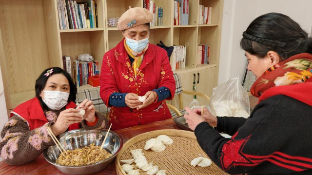 活动现场屏东长者食堂内热闹非凡。只见市民委员代表周阿姨把提前准备好的饺子皮、馅料和各种工具一一摆在木桌上,志愿者纷纷撸起袖子,大展身手。大家一边交流着包饺子的技巧,一边分享着生活中的点滴趣事。不一会儿,饱含着祝福的热气腾腾的饺子出锅,饺子香味瞬间弥漫了整个长者食堂。大家一边品尝着热腾腾的饺子,一边欣赏着色彩鲜艳、图案生动的年画,年味十足。“这次活动让我感受到了家的温暖,饺子和年画的结合,让我仿佛回到了小时候过年的时光。”正在吃饺子的侨胞李阿姨竖起大拇指开心地说。